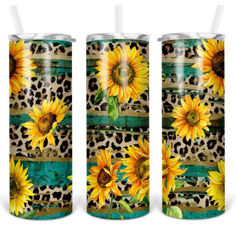 Cheetah Sunflower Woodgrain Tumbler