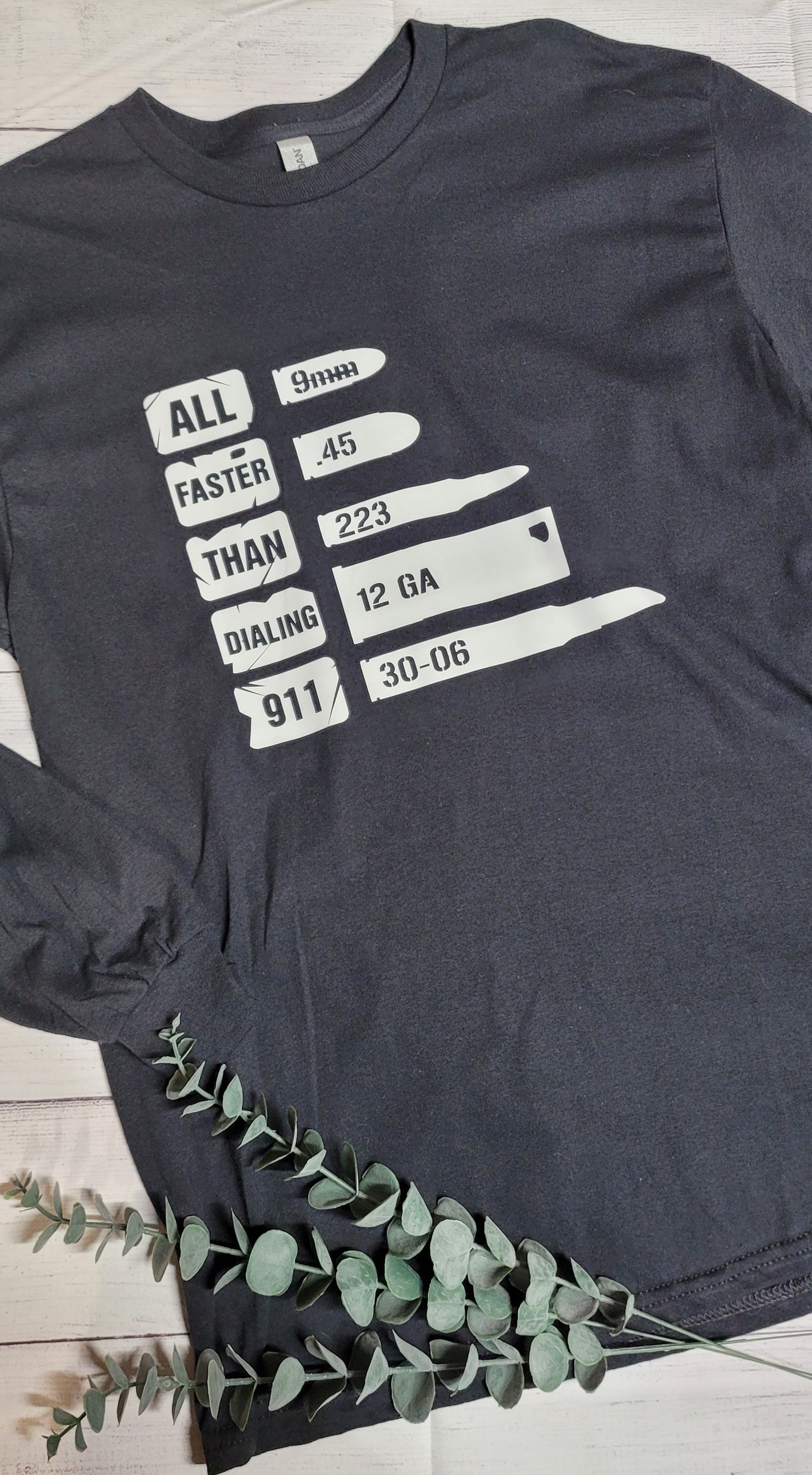 *Solid* Faster than 9-1-1 (Bullets) (Custom Order T-Shirt)