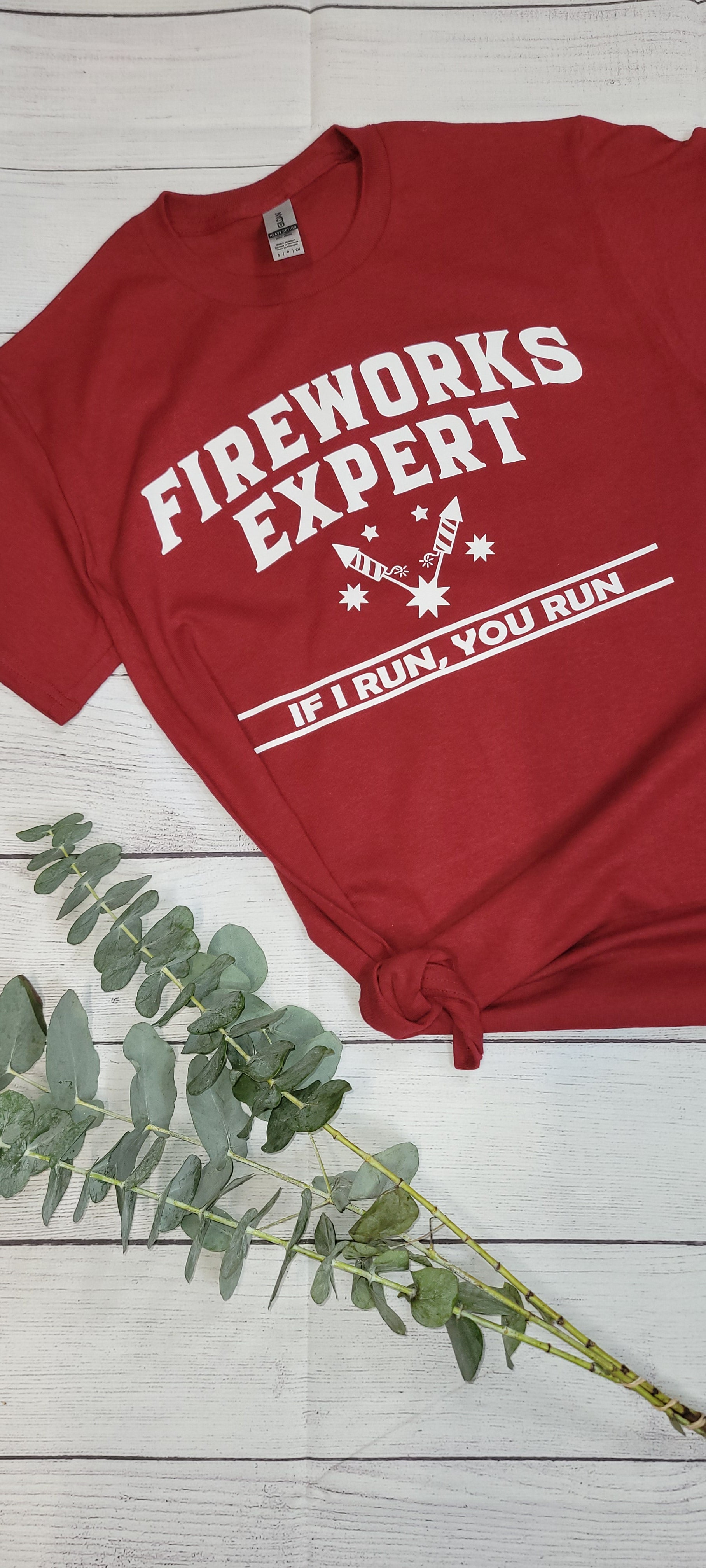 *Solid* Fireworks Expert - White Print (Custom Order T-Shirt)